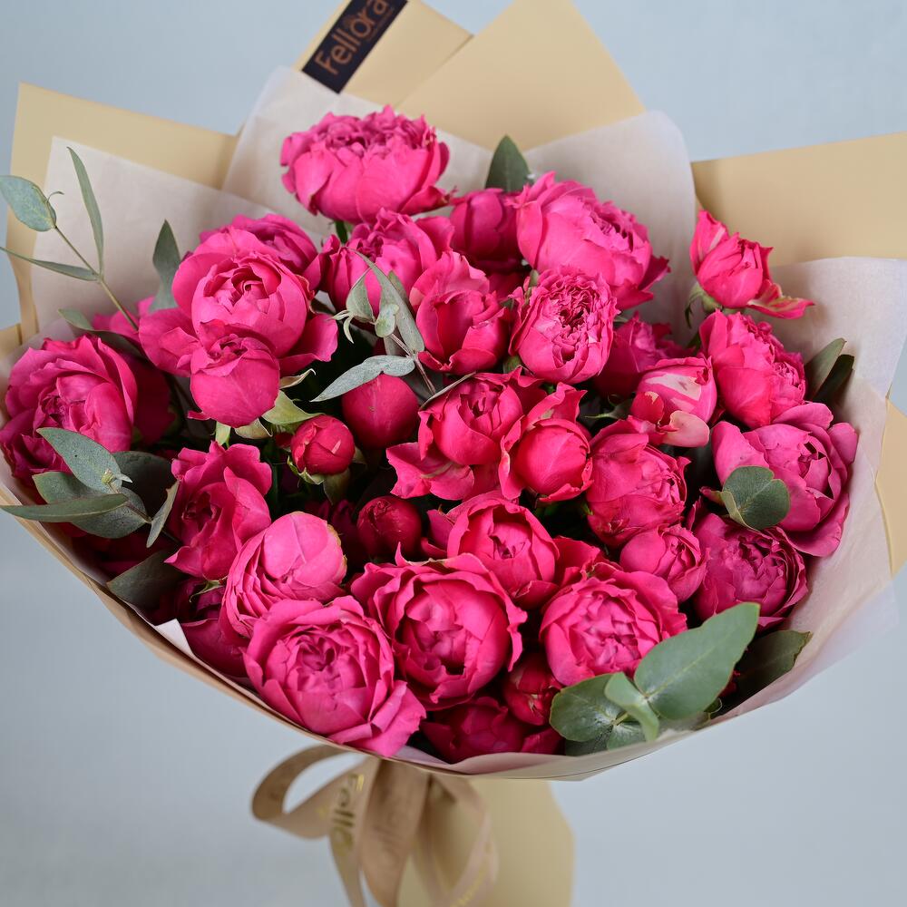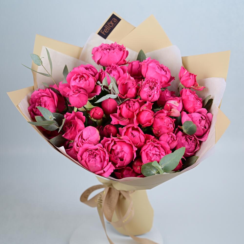 Ribbon - 1 pcs Eucalyptus - 3 pcs wrapping paper - 4 pcs soray peony rose cerish - 9 pcs