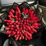 A breathtaking 99-piece tulip bouquet, carefully curated to deliver a harmonious blend of colors and varieties. This exquisite arrangement exudes natural beauty, making it a perfect gift or centerpiece for any occasion. Each tulip, with its graceful petals, contributes to a stunning ensemble that captures the essence of spring in a captivating display.
