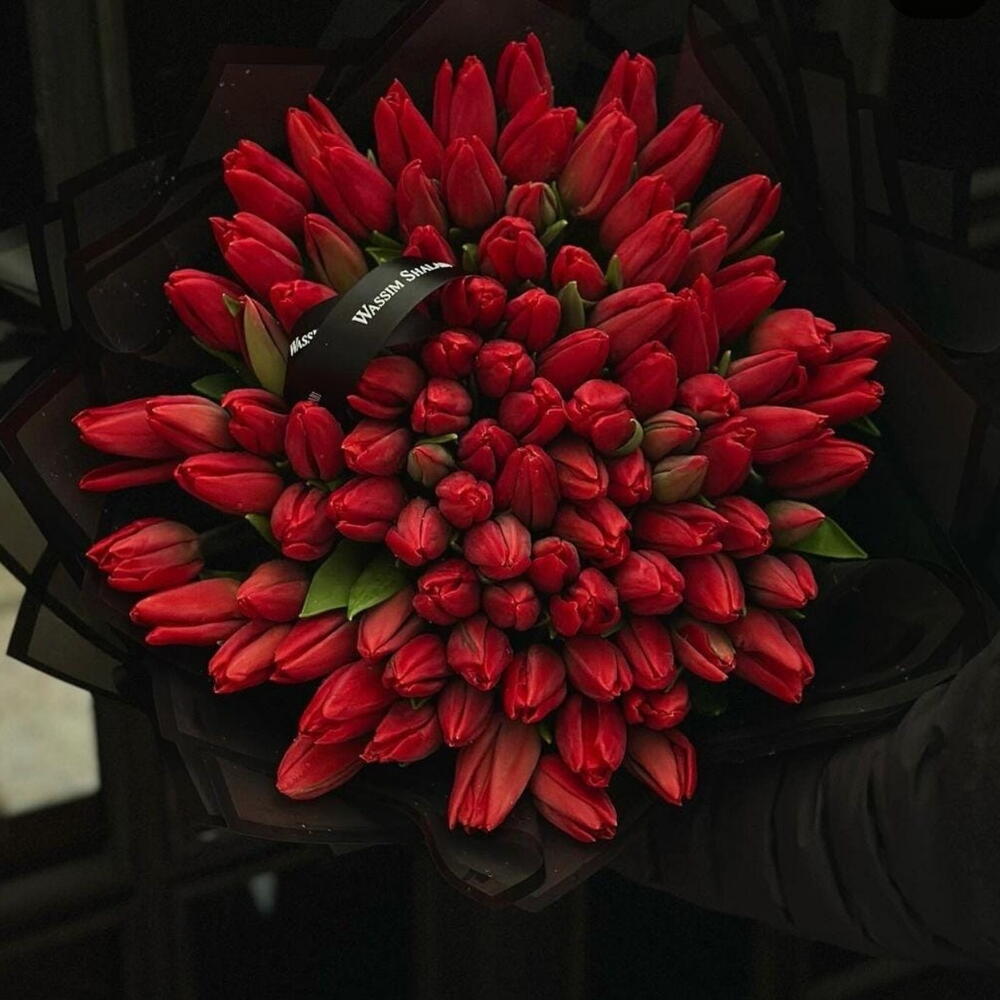 A breathtaking 99-piece tulip bouquet, carefully curated to deliver a harmonious blend of colors and varieties. This exquisite arrangement exudes natural beauty, making it a perfect gift or centerpiece for any occasion. Each tulip, with its graceful petals, contributes to a stunning ensemble that captures the essence of spring in a captivating display.