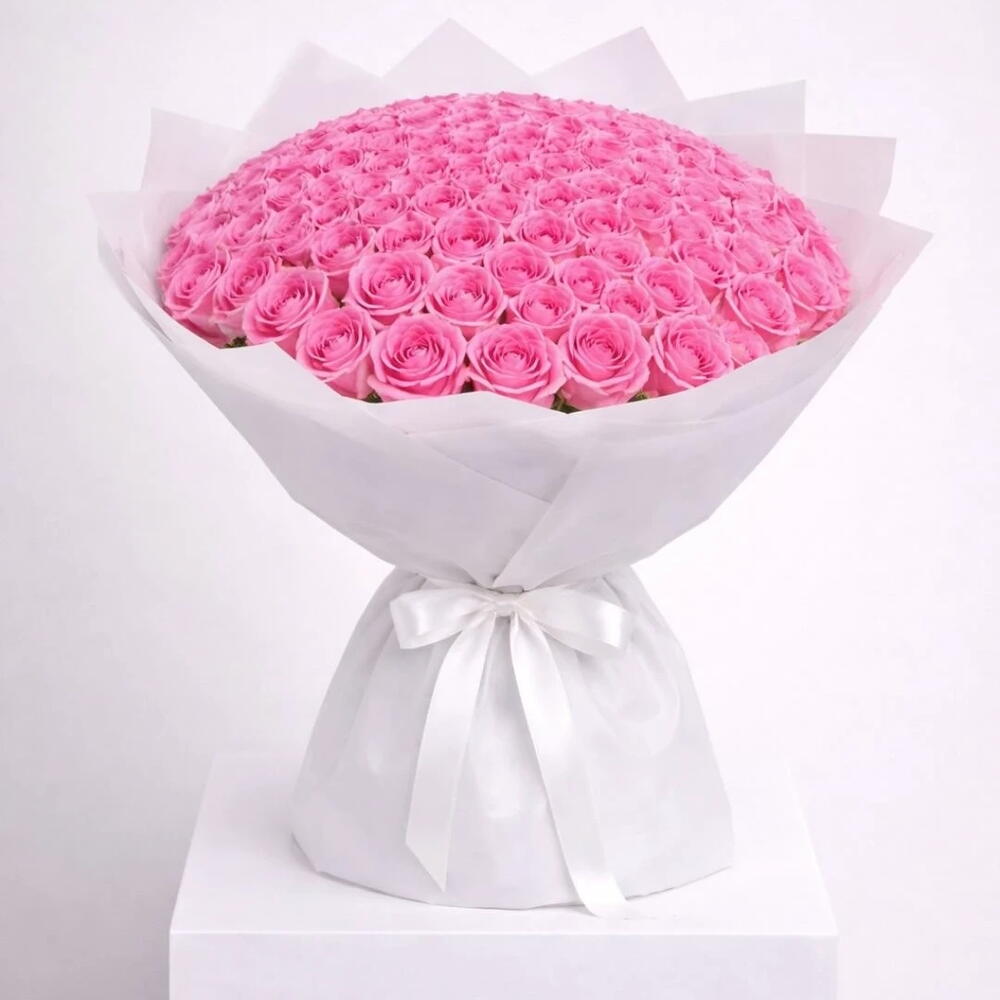 99 Pink Roses In White A Premium Bouquet For Anniversary or valentine s