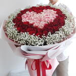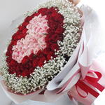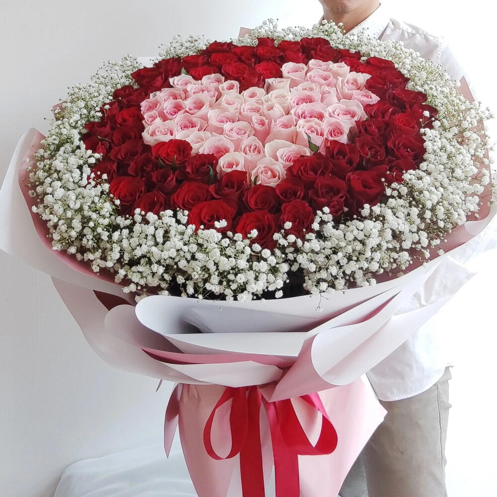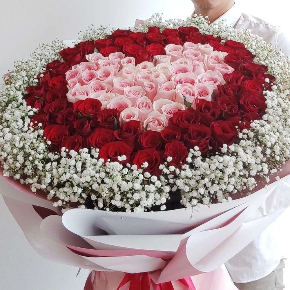 Red rose - 50 pcs Gypsophila - 10 pcs soft pink rose - 51 pcs
