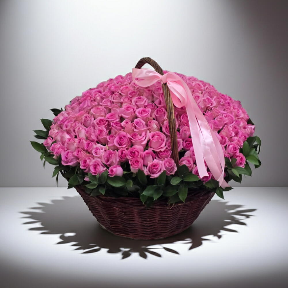Delight someone special with our charming pink flower basket, brimming with elegance and tenderness. Each bloom is handpicked and artfully arranged to create a graceful and heartwarming display. Perfect for birthdays, anniversaries, or simply to express love, this basket captures the essence of affection and joy in every blossom.