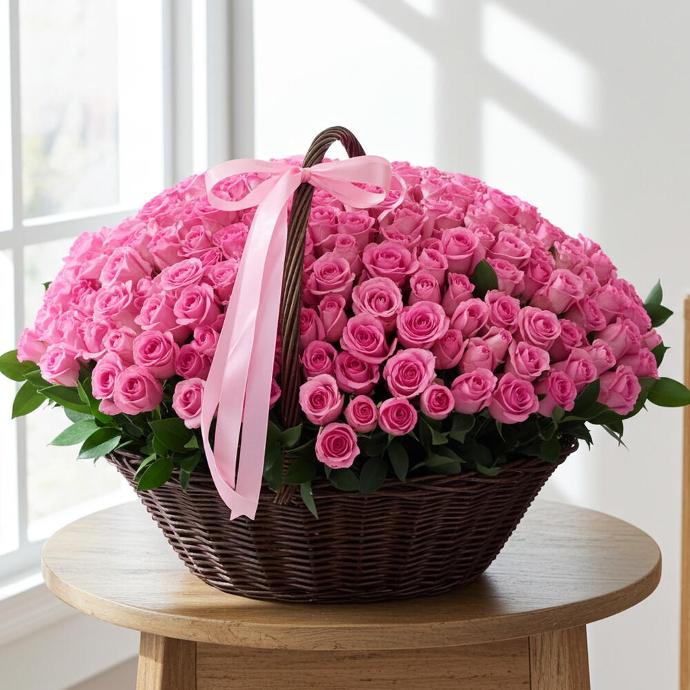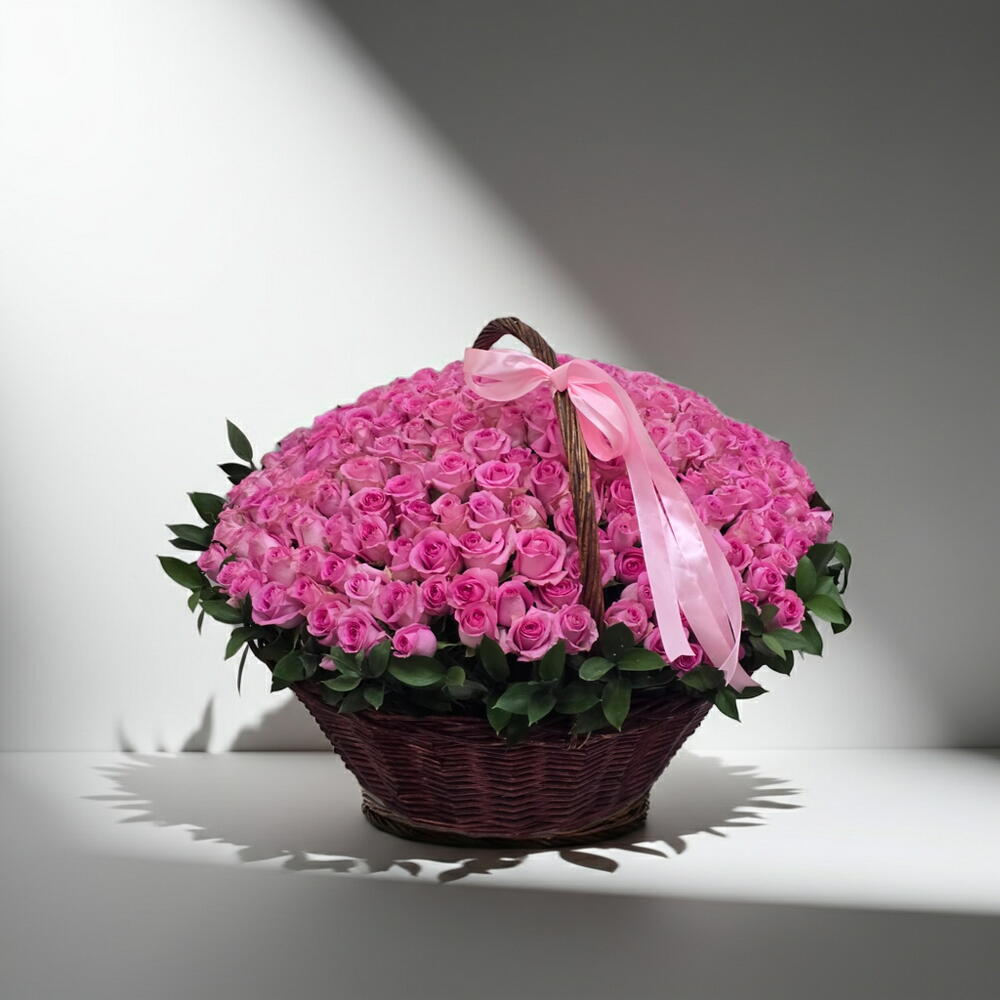 Pink ribbon - 1 pcs large basket - 1 pcs pink roses - 301 pcs