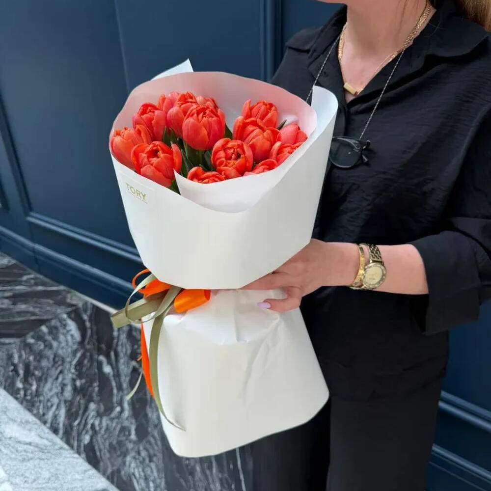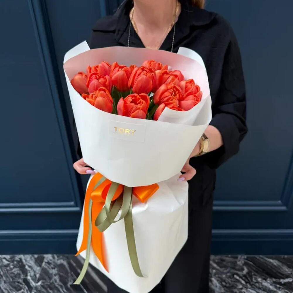 A bouquet of 15 orange peony tulips