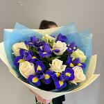 A bouquet of delicate roses and bright irises