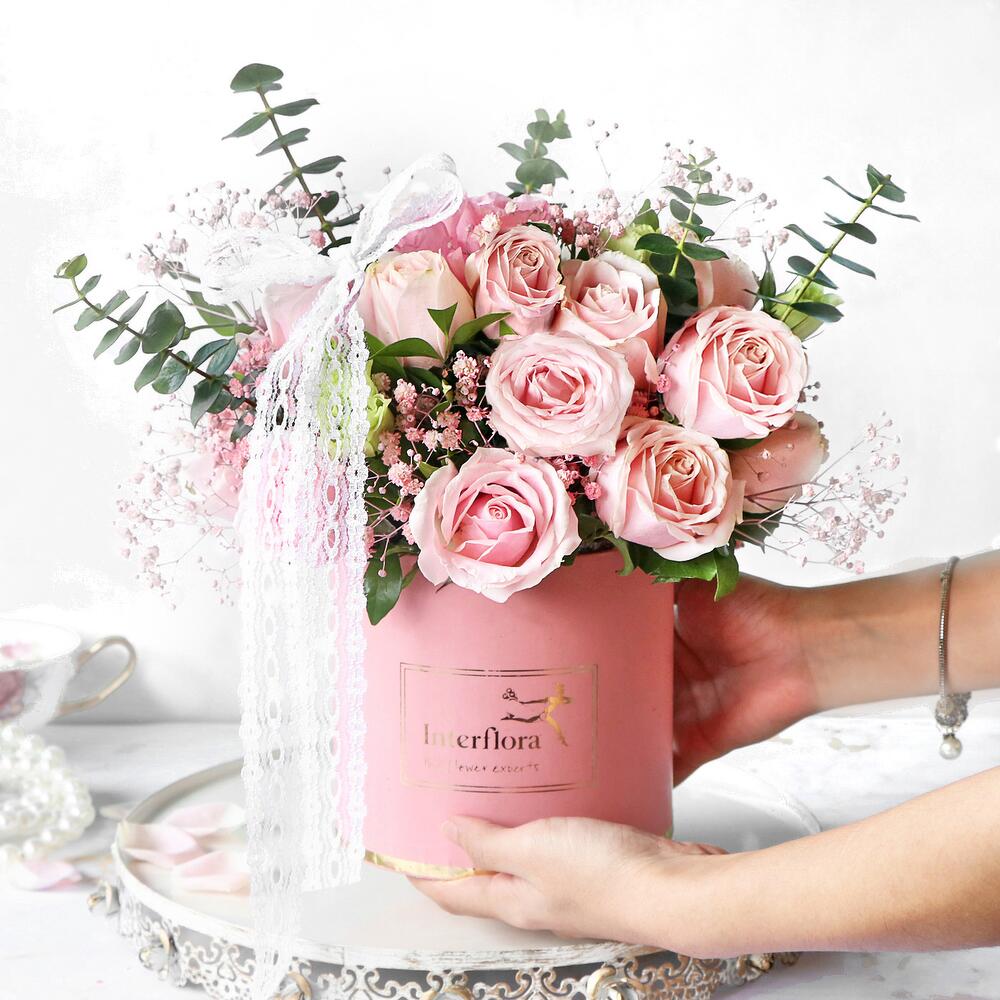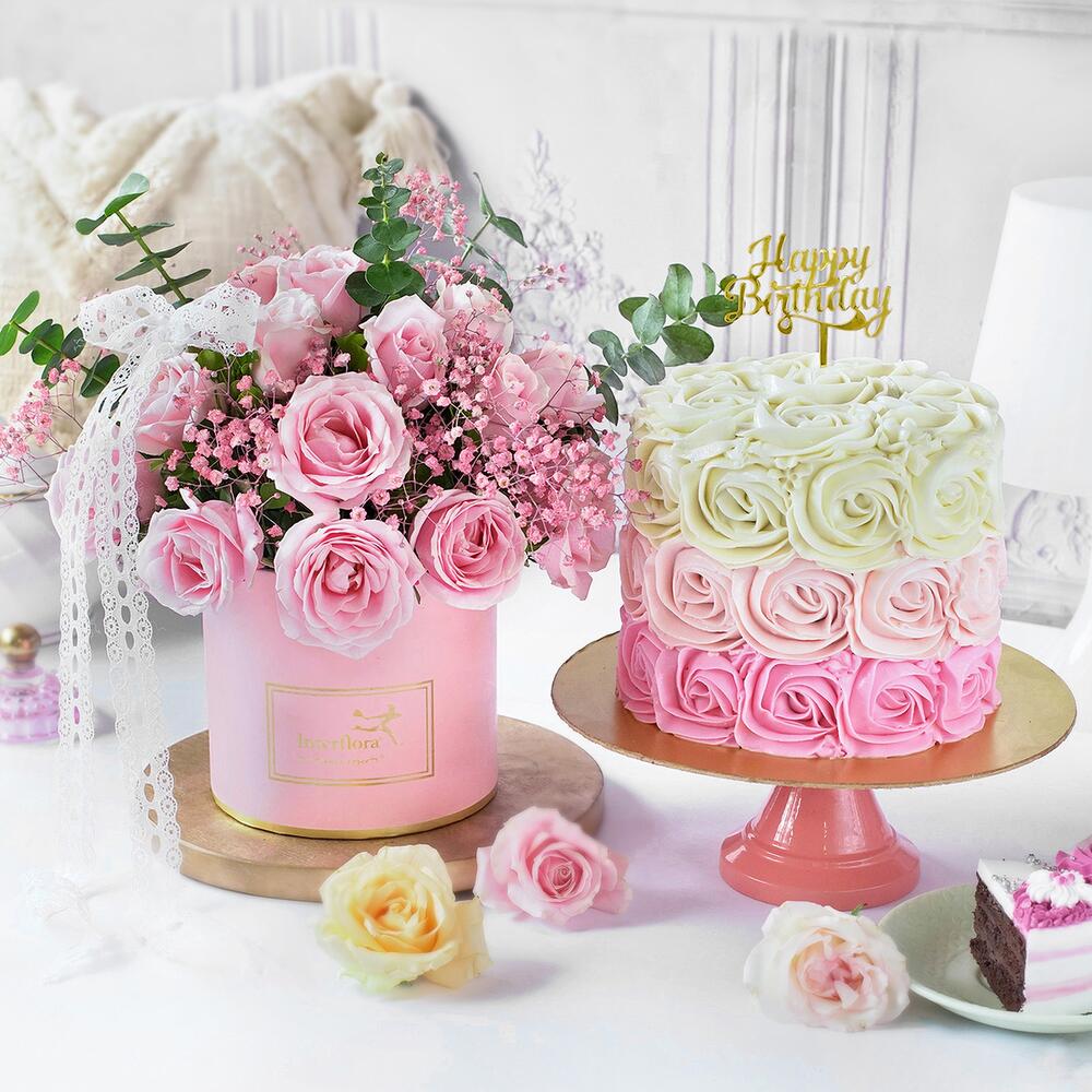 Their soft petals, that unforgettable familiar sweet smell, roses have their authentic charm. This birthday surprise is all about embracing the beauty of roses! With a rosette chocolate cake and a gold birthday tag, this will be a memorable surprise.