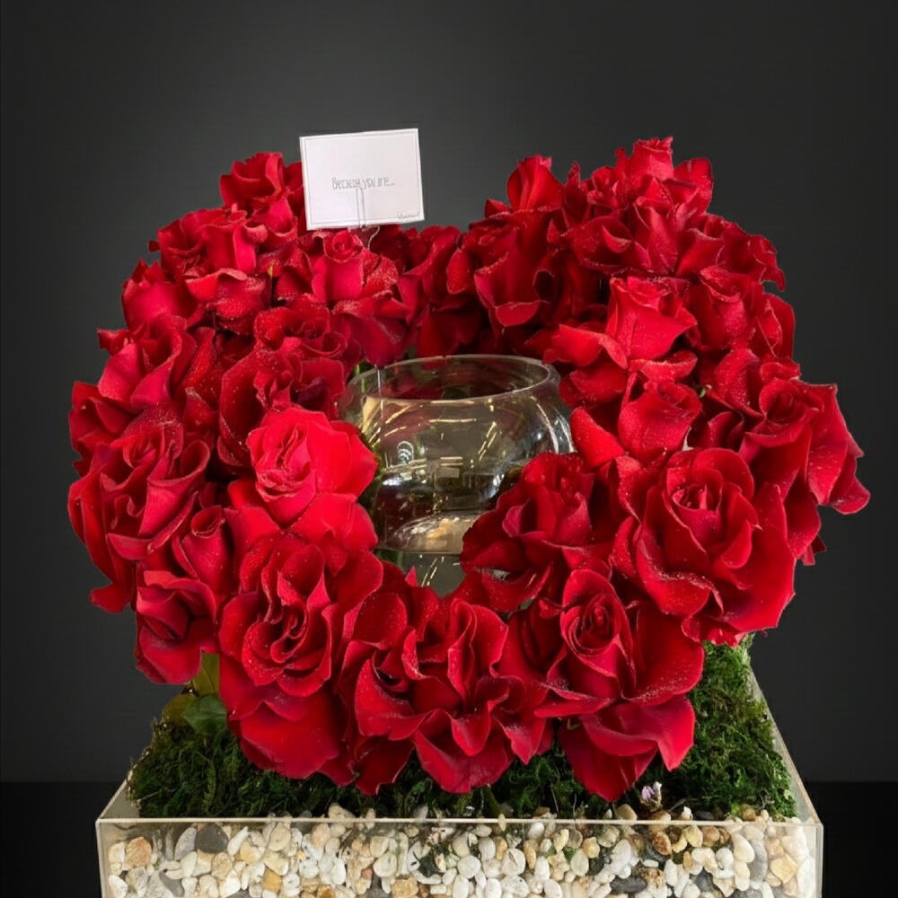 ACRYLIC TRAY WITH BETTA FISHBOWL AND ROSES (HEART SHAPED)