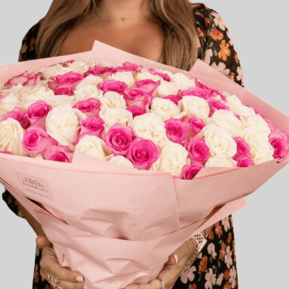 The bouquet is a harmonious symbol of love, respect, and admiration, making it an exceptional choice for various occasions. Whether celebrating a special milestone, expressing gratitude, or sharing your deepest feelings, this arrangement speaks volumes with its sophisticated design and thoughtful combination of colors.