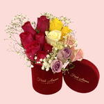 Red rose - 6 pcs Pink rose - 4 pcs White rose - 2 pcs Yellow rose - 2 pcs gypso - 1 pcs