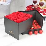 forever red roses - 13 pcs heart shape chocolates - 25 pcs arranged in a designer black square box. - 1 pcs