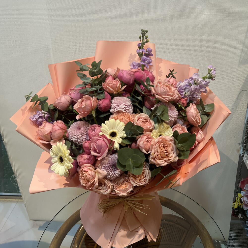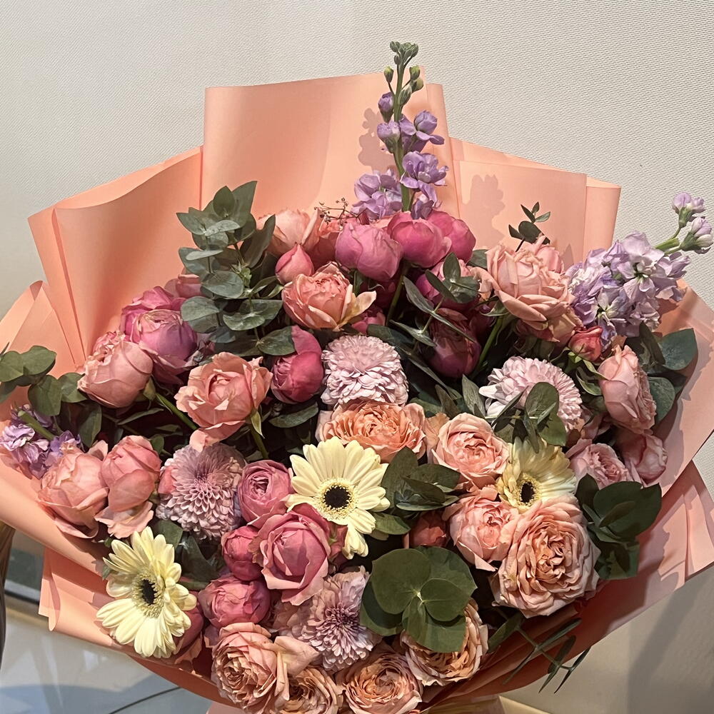 Chrysanthemum - 5 pcs Gerbera - 3 pcs matthiola - 3 pcs julietta - 7 pcs