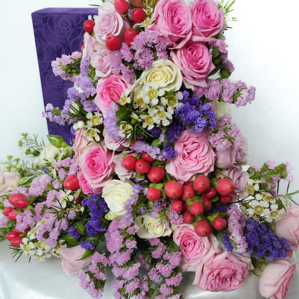 tanacetum - 3 pcs hypericum red - 5 pcs statice purple - 8 pcs spray roses - 20 pcs ahmed al maghribi – nizwa perfume 75ml - 1 pcs