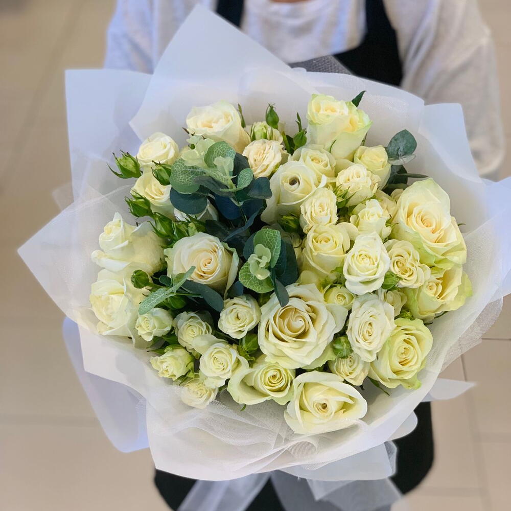 roses - 31 pcs spery roses - 6 pcs in a bqt nice warpping papper - 10 pcs eucaely - 2 pcs