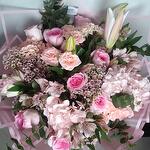 lilies pink - 3 pcs wax pink - 4 pcs alstroemeria pink - 5 pcs cinerea - 5 pcs hydrengea pink - 3 pcs jumila - 10 pcs rose sweet sarah - 5 pcs