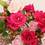 rose pink - 10 pcs lily white - 10 pcs limonium purple - 5 pcs hypericum red - 5 pcs rose fucshia - 10 pcs astilpe pink - 5 pcs