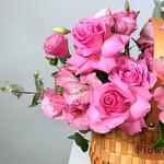 A charming pink flowers basket filled with fresh premium Pink Roses (Rosa)—styled with soft accents for a romantic, elegant finish. This beautiful flowers bouquet is perfect as a Birthday Bouquet and one of the best birthday bouquet choices, ideal for birthday flowers / flowers for birthday and thoughtful birthday gifts. Flowers detected (included in the design): Pink Roses (Rosa), Pink Spray Roses (Rosa – spray), and Pink Alstroemeria (Alstroemeria/Peruvian Lily), finished with fresh greenery (Eucalyptus). Designed as a premium pink flowers basket / pink flowers box look, it’s also a lovely congratulations bouquet, a sweet romantic bouquet for love and romance, and a classy pick for the best flowers for anniversary or best flowers for newborn celebrations. If you’re searching for a trending bouquet, unique flowers bouquet, and the best bouquet in Dubai, this pastel-toned basket arrangement delivers premium quality flowers in a stylish, modern way.