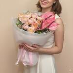 peony type spray rose - 5 pcs pink anthuriums - 3 pcs