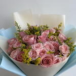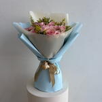 Soft Pink Rose Bouquet with Baby Blue Wrap