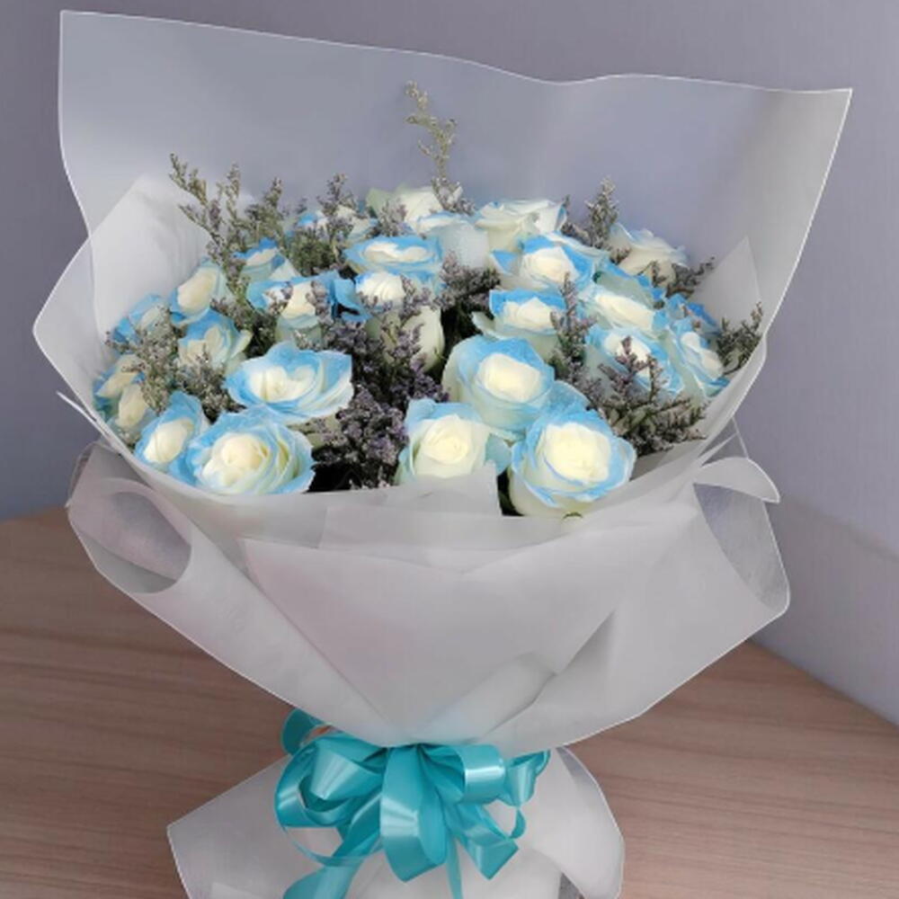 limonium purple - 3 pcs sprayed light blue rose - 30 pcs