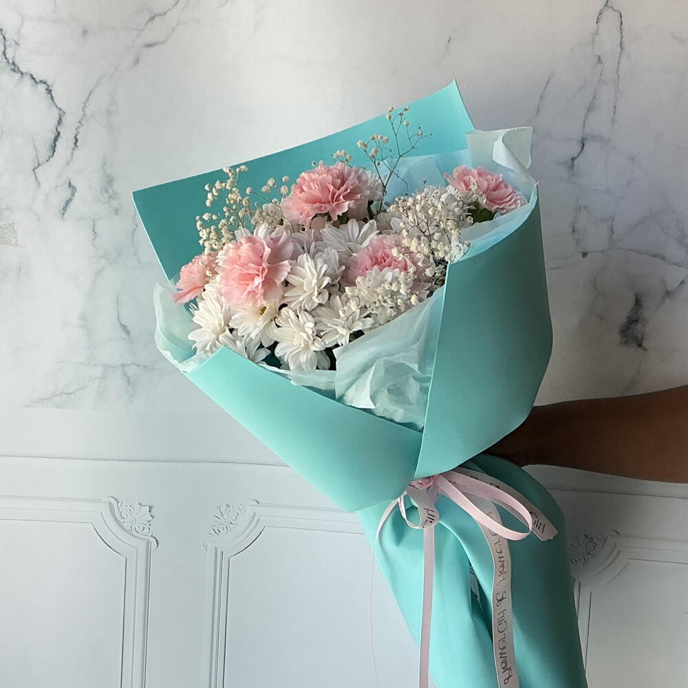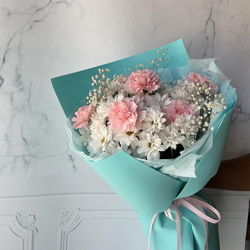 chrysanthemum spray speedy white - 7 pcs carnation young nobleman - 6 pcs chrysanthemum spray pinacolada l72 - 1 pcs gypsophilia xlence 80 - 3 pcs