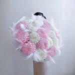 white chrysanthemum - 10 pcs feather - 20 pcs pink chrysanthemum - 10 pcs