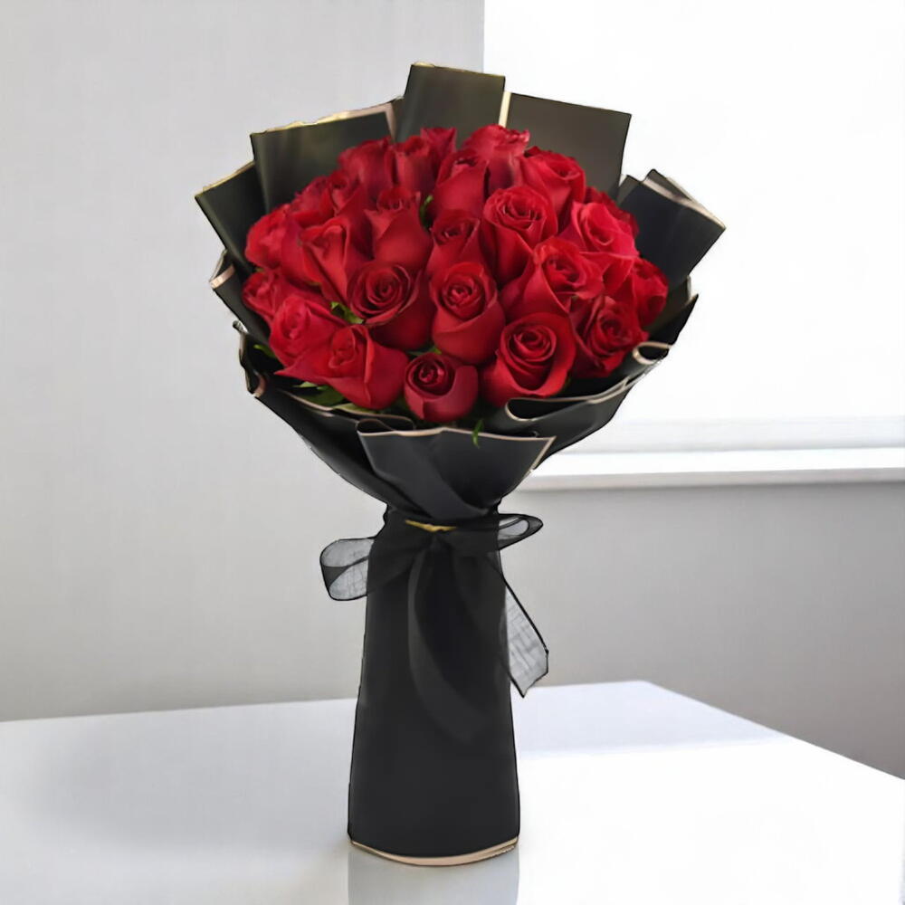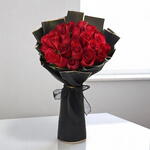 Celebrate love, passion, and joy with the Balloons Blooms Bliss bouquet — a captivating ensemble of 31 luxurious red roses and 5 dazzling foil balloons, all elegantly wrapped and finished with a chic ribbon. This premium bouquet is a showstopper, perfect for surprising someone special on the most memorable occasions. Whether its a romantic gesture, a heartfelt apology, or a celebratory gift, this bouquet speaks volumes without saying a word. Care Instructions: Place the bouquet in a cool, shaded area away from direct sunlight and heat. Keep stems trimmed and in clean water if unwrapped. Balloons stay inflated 6–8 hours depending on room temperature. For longevity, avoid placing balloons near sharp objects or ceilings.