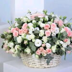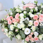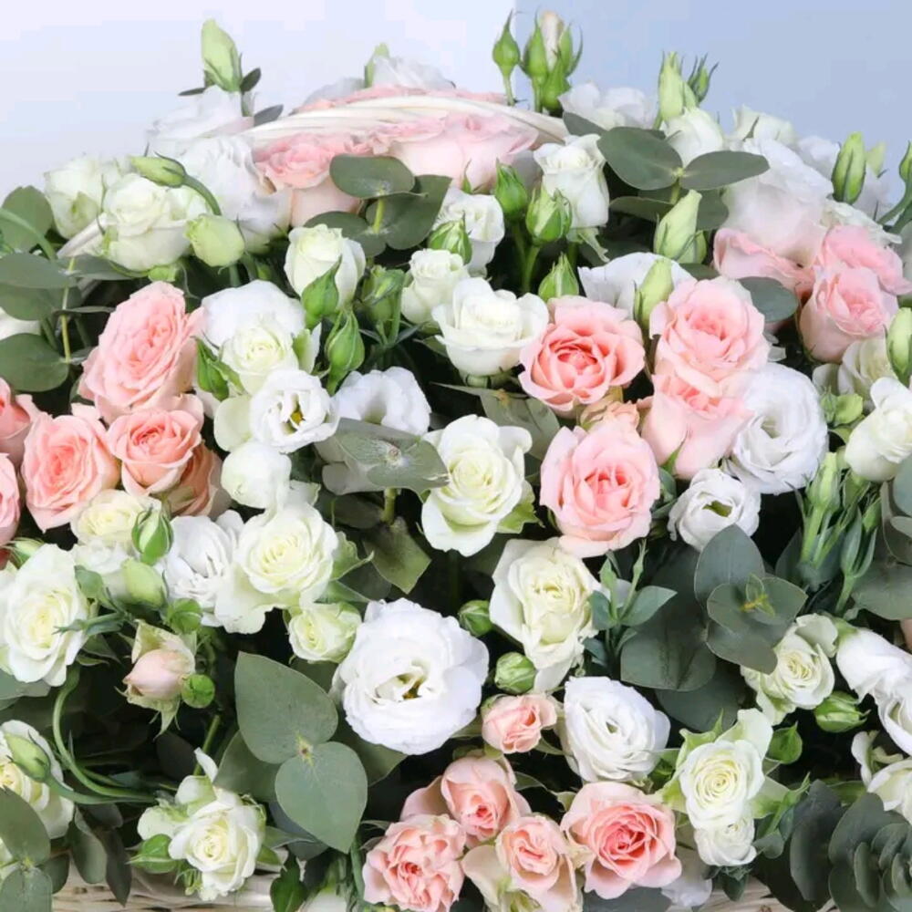Lisianthus - 10 pcs spray rose white - 10 pcs spray rose pink - 10 pcs eucalyptus leaves - 10 pcs