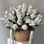 Basket of white matthiola (size S)