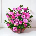 Basket of Pink Blooms is a graceful floral arrangement that radiates charm and femininity. Featuring 10 fresh pink roses, 5 delicate pink carnations, and 3 soft pink lisianthus (stoma), accented with 10 lush ruscus leaves, this arrangement is carefully designed in a handwoven basket. Its blend of romantic pink tones and natural greenery makes it a perfect gift for birthdays, anniversaries, Mother’s Day, or simply to brighten someone’s home with elegance and love. This pink flower basket is a true celebration of love and tenderness, combining the lush beauty of roses with the timeless elegance of carnations and lisianthus. The ruscus leaves provide a fresh green balance, enhancing the vibrant shades of pink. Its compact yet eye-catching design makes it ideal as a centerpiece or a thoughtful gift that speaks directly to the heart. Care Instructions: Keep the floral foam inside the basket moist by adding a small amount of fresh water every day. Place the basket in a cool area away from direct sunlight, air conditioning, or heat sources. This will help the flowers maintain their freshness and beauty for longer.