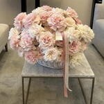 Basket of white and pink roses