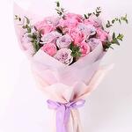Pink rose - 11 pcs light purple rose - 10 pcs palviforia leaves - 5 pcs