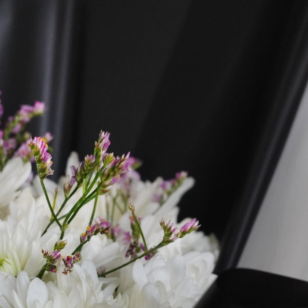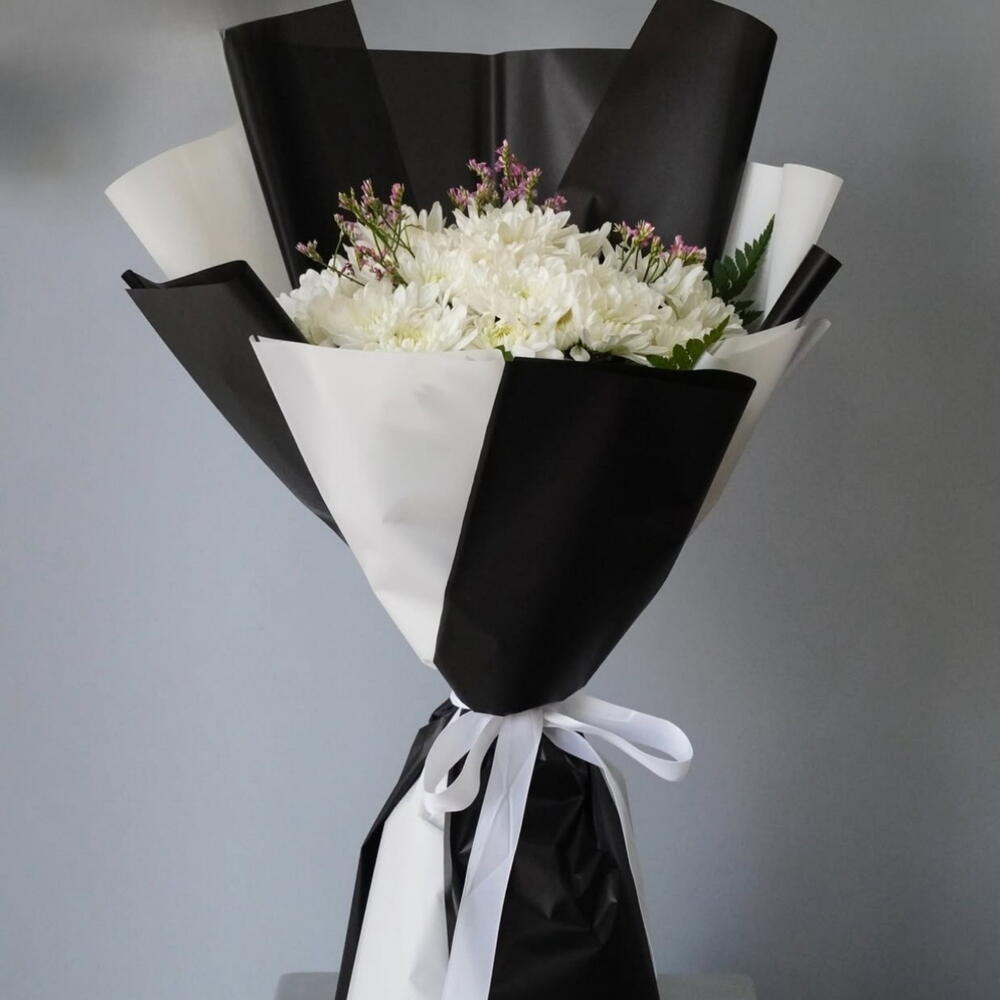 Retro blends timeless elegance with modern sophistication, turning a simple bouquet into a luxury statement. Featuring 20 pristine white chrysanthemums accented with delicate lavender statice, each bloom is arranged in a sleek black-and-white wrap, creating a bouquet that exudes classic charm, understated glamour, and moody sophistication. Perfect for your girlfriend, wife, fiancée, or the woman whose presence commands attention, Retro is ideal for anniversaries, intimate celebrations, thoughtful surprises, or bold gestures that leave a lasting impression. Every flower is chosen for freshness, flawless petals, and a perfect balance of monochrome elegance with soft lavender accents, making this a collector-worthy luxury bouquet. Send it from a devoted partner, loving husband, or admirer to convey romance, refined taste, and subtle yet unforgettable charm. Available for same-day delivery in Dubai and across the UAE, Retro perfectly blends vintage allure, black-and-white sophistication, and modern luxury. ✨ Because some women aren’t just remembered — they’re iconic.