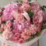 pink hydrangea - 5 pcs eucalyptus leaves - 15 pcs peach spray roses - 20 pcs peach pink carnations - 10 pcs