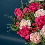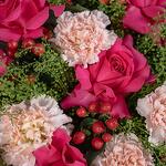 hypericum red - 6 pcs carnation light pink - 4 pcs thalaspi - 4 pcs rose fuschia floyds - 6 pcs