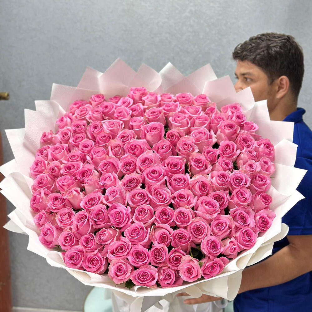 A stunning arrangement of fresh big pink roses, beautifully wrapped to express love, elegance, and heartfelt emotions perfectly.