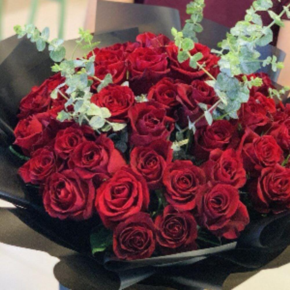 black magic red rose - 101 pcs eucaly 5 stems - 5 pcs nice black warpping papper - 25 pcs