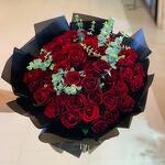 101 BLACK MAGIC RED ROSES & EUCALY 5 STEMS & NICE BLACK WARPPING