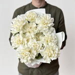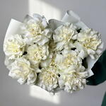 Blanche Elegance is a sophisticated bouquet featuring eleven premium white French roses known for their full, rounded blooms and soft layered petals. Their pristine ivory tone symbolizes sincerity, grace, and refined affection. Carefully arranged to create a balanced and harmonious silhouette, this bouquet offers a graceful presence while maintaining a modern, luxurious feel. The blooms resemble delicate garden roses, adding texture and depth to the composition. Presented in elegant designer wrapping, the arrangement is ideal for weddings, anniversaries, engagements, birthdays, or as a meaningful gesture of appreciation and respect. Prepared with attention to freshness and detail, this bouquet delivers timeless beauty and a lasting impression.