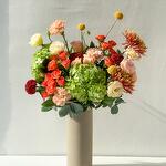 Indulge in the celestial beauty of our Florists Special arrangement. This carefully curated bouquet features an enchanting mix of flowers. Weve included 3 peach Carnations, adding a soft sunset hue to the arrangement. Two green Hydrangeas and 2 Deco Spiders add an interesting texture and depth, while the soothing harmony of 2 Alstromerias contribute to the sheer elegance of the bouquet. The playful pop of 3 yellow Craspedias radiates joy and positivity. This arrangement is finally perfected with 3 captivating Chrysanthemum Pingpongs, making it an absolute delight to the senses. Ideal for adorning tables, gifting, or simply uplifting your mood. Enjoy the charm and cheerfulness of this unique floral blend.