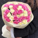 A perfect blend of pink and white roses bouquet in a stylish wrapping.