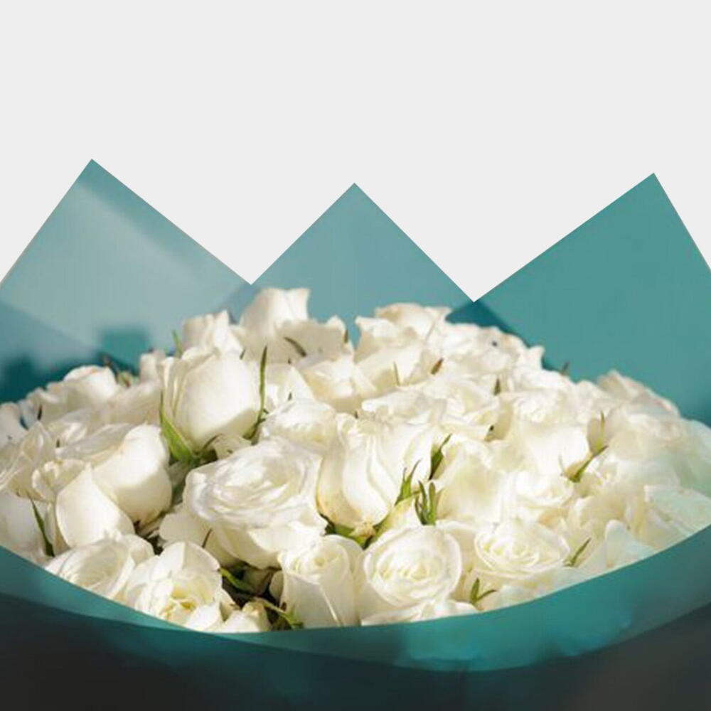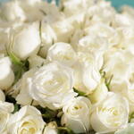 35 white baby roses arranged with regal simplicity. Making an elegant and thoughtful gift for someone special.