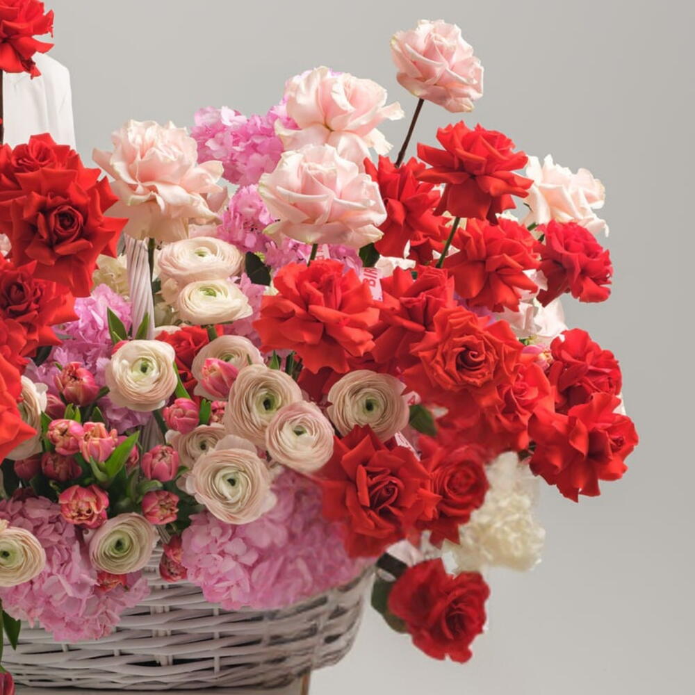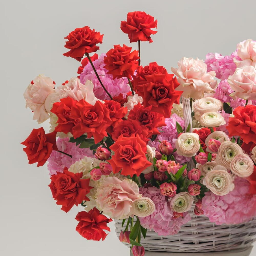 Bloom Overload- Luxury XL flower Basket of Roses, Hydrangea, tulips and rununculus