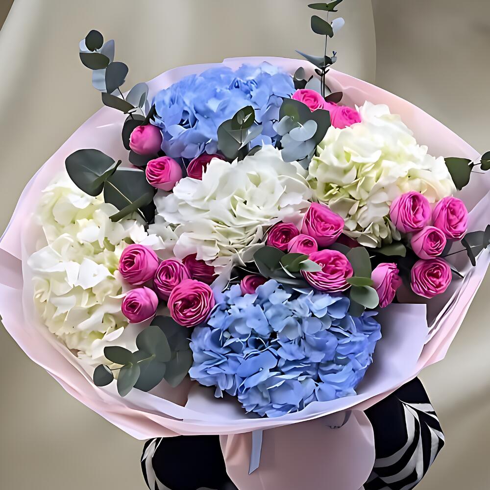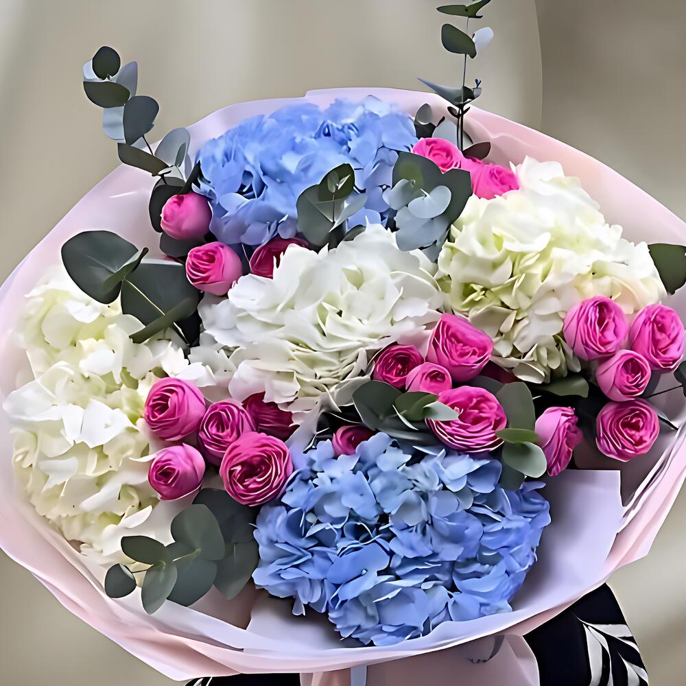 A white and pink hydrangea mix bouquet offers a soft and elegant look, perfect for adding a touch of charm to any setting. The lush hydrangea blooms in delicate white and gentle pink tones create a beautifully balanced arrangement that feels fresh and romantic. Ideal for celebrations, gifting or simply brightening up your space, this bouquet brings a graceful and timeless style with its full, rounded blossoms and pastel colors.