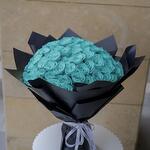 Bouquet of 50 stems of blue roses in a nice black wrapping
