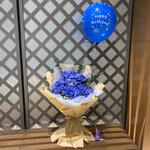 Blue hydrangea bouquet with balloon