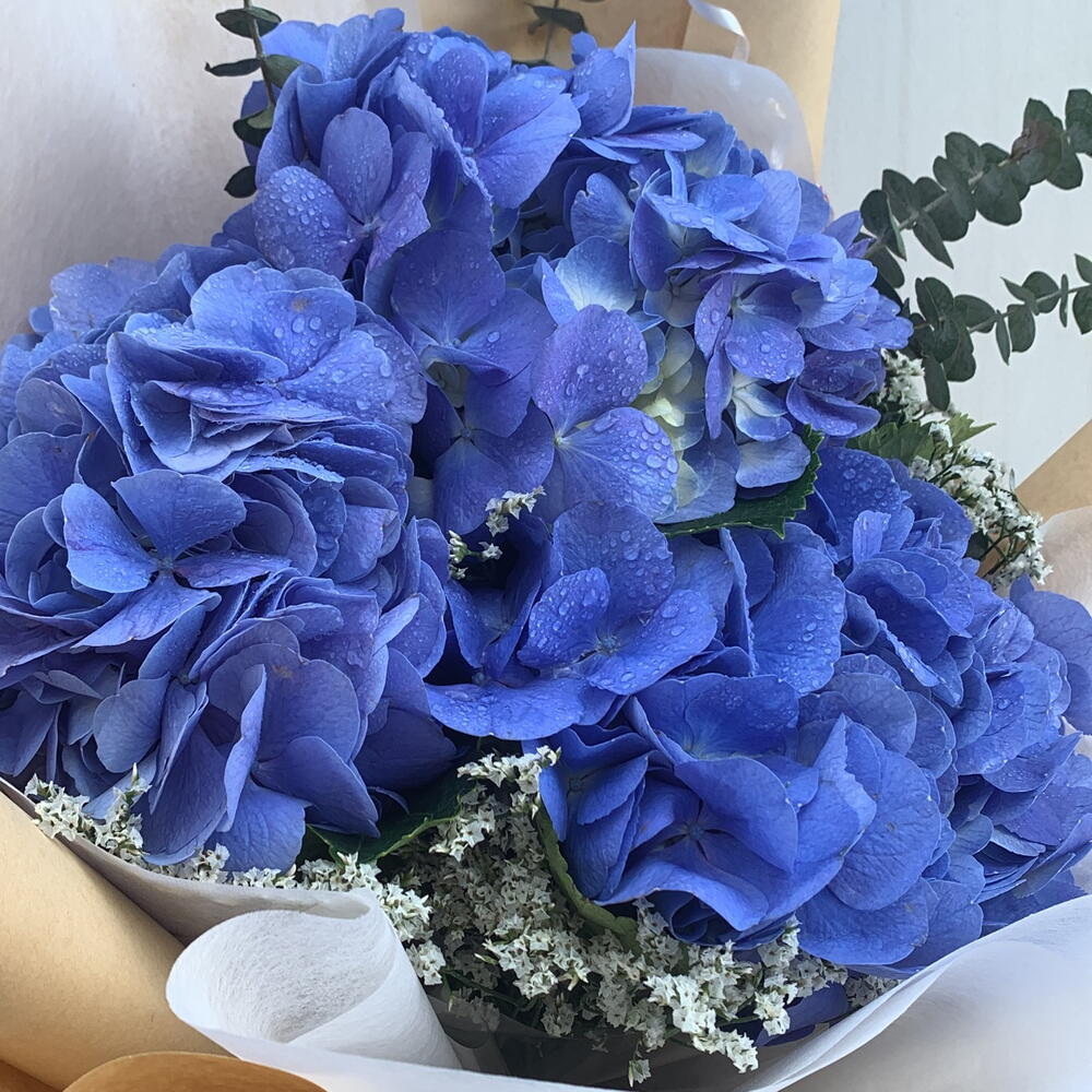Eucalyptus - 4 pcs Limonium - 4 pcs hydragia - 3 pcs