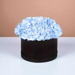 Des - Arrangement of beautiful 5 stems Blue Hydrangea in a Black round Box. Size - 22*22*10