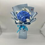 1 Blue Hydrangea with Gypsophila in Blue Wrapping.