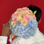 Blue Tint: Small Bouquet of Hydrangeas, Roses and Eustomas