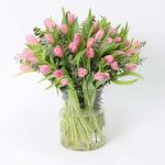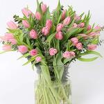 51 Pink Tulips 3 Stems Eucalyptus Prepared in Cylinder Vase